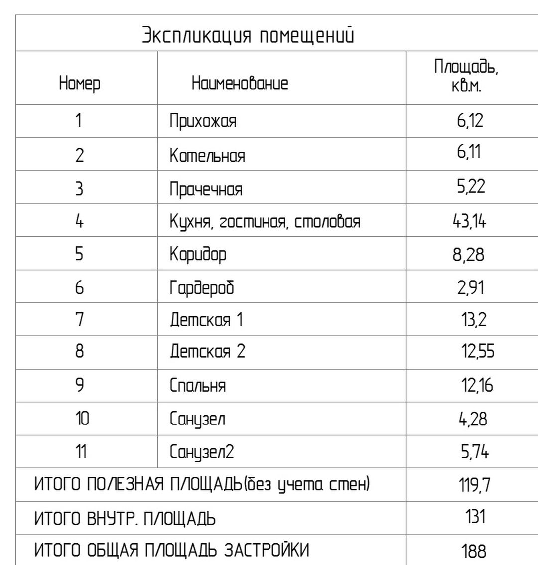 (в кирпиче) Площадь застройки – 188,0 кв.м.